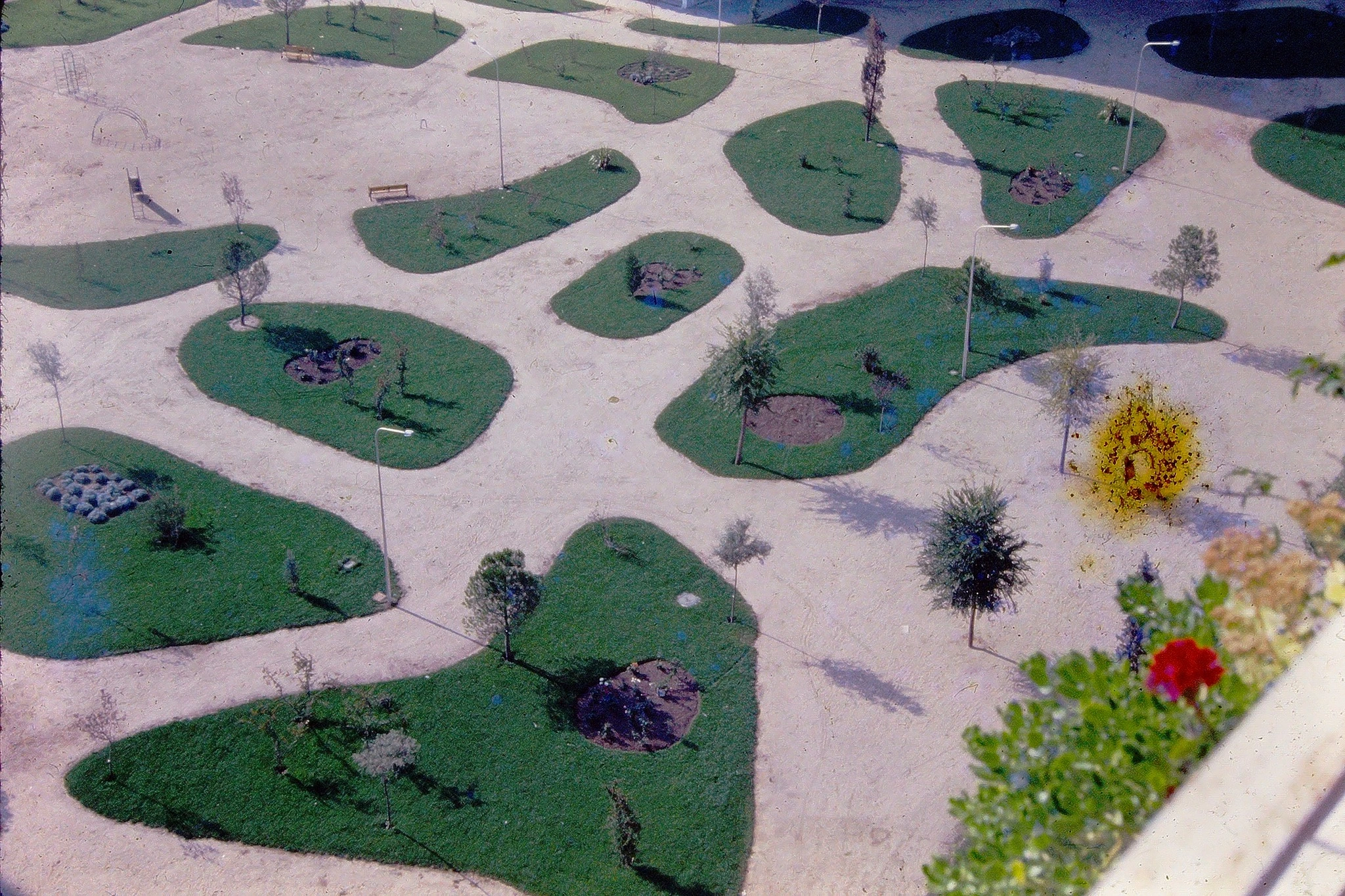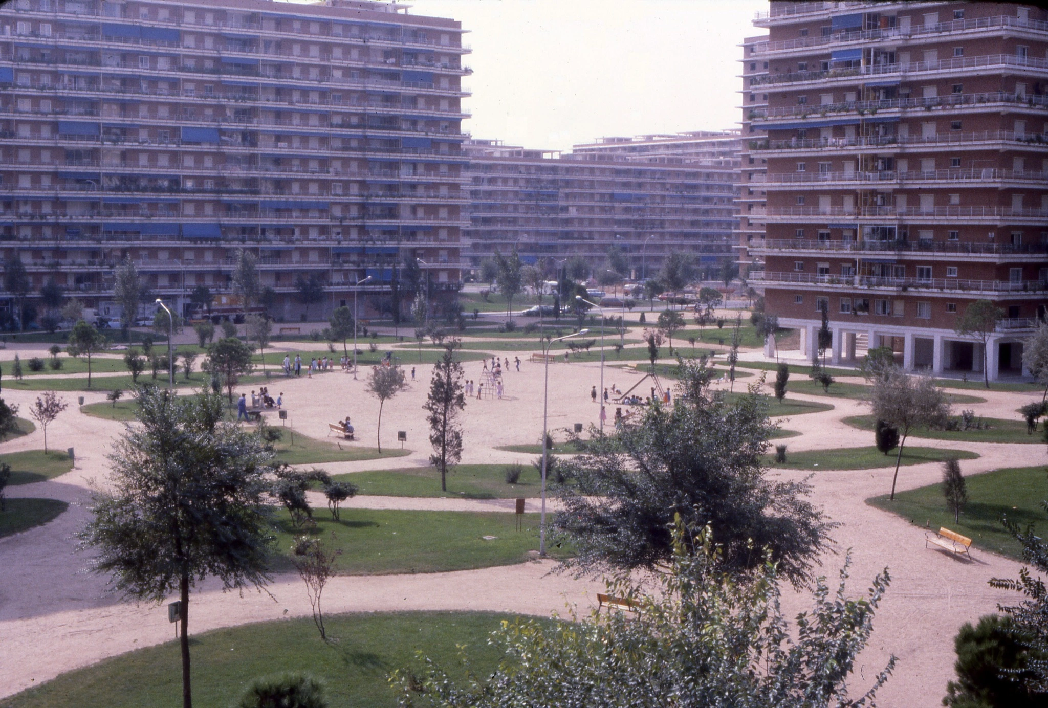 La parcela en la que hoy se encuentra el Andrés Segovia, Vicente Aleixandre, San Juan Bosco y el nuevo bloque de viviendas iba a tener también sus cuatro bloques y su parque al estilo del resto. La promotora se quedó sin pasta para comenzar en dicha parcela y para terminar las torres, como muchos sabréis.